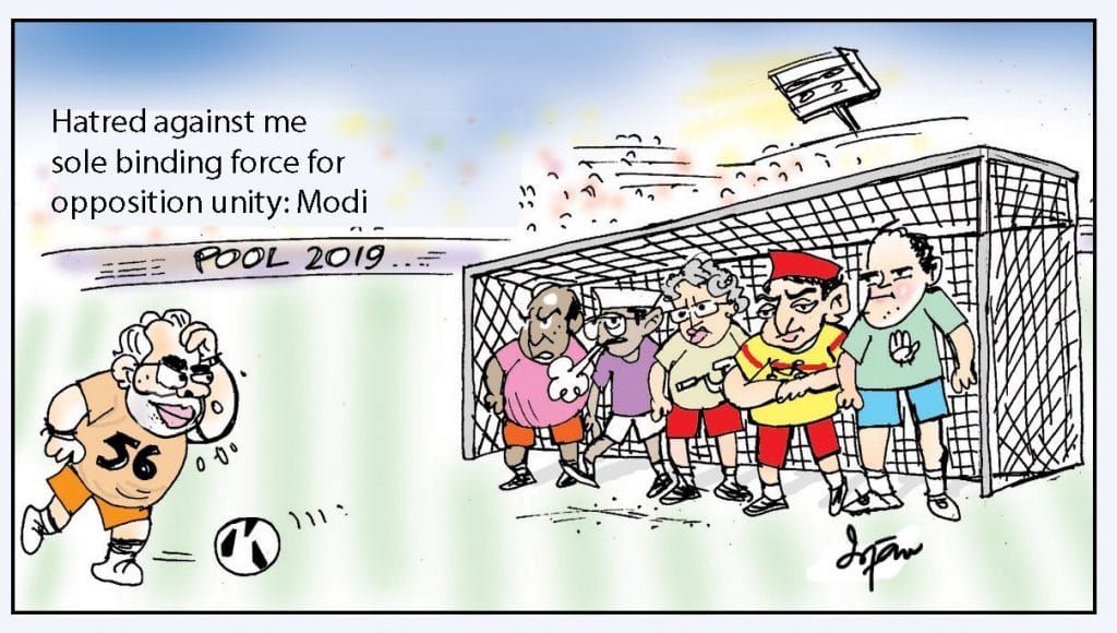 Two things are taking India by storm right now — FIFA World Cup 2018 and opposition unity ahead of the 2019 elections. Irfran Khan, in his cartoon, clubs the two together to depict the opposition in their fight against Prime Minister Narendra Modi.