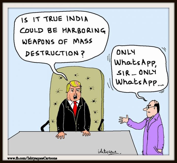 After the recent cases of lynchings over WhatsApp forwards, Ishtyaque Ansari compares the social media platform to weapons of mass destruction. Ansari takes a jibe at Donald Trump too with the US’s famous ‘weapons of mass destruction’ card.