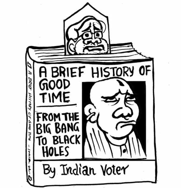 E.P. Unny in The Indian Express draws on the death of renowned physicist Stephen Hawking on Wednesday by using the title of his book ‘A Brief History of Time’ to poke fun at Yogi Adityanath and Modi’s passing ‘Acchhe Din’ (good times).