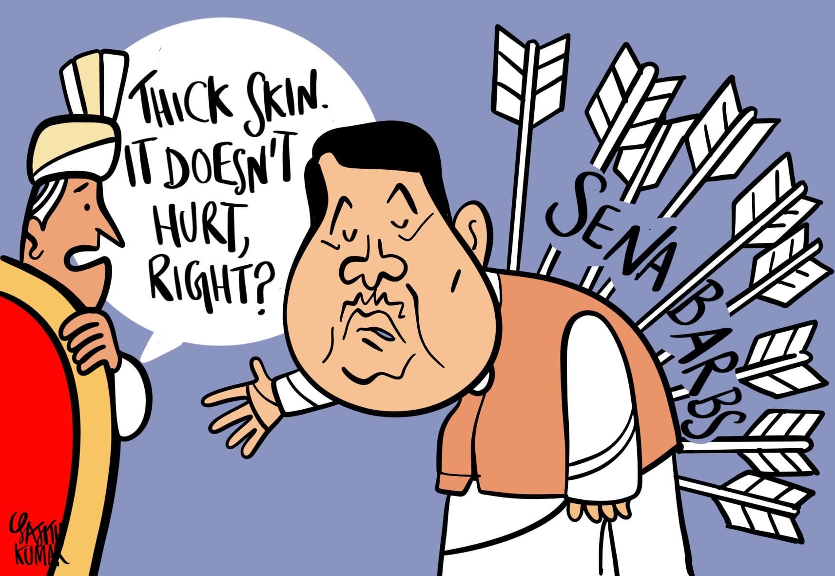 In the wake of the tussle going on between the Shiv Sena and BJP over the chief minister’s post in Maharashtra, Sajith Kumar pokes fun at ‘caretaker CM’ Devendra Fadnavis.