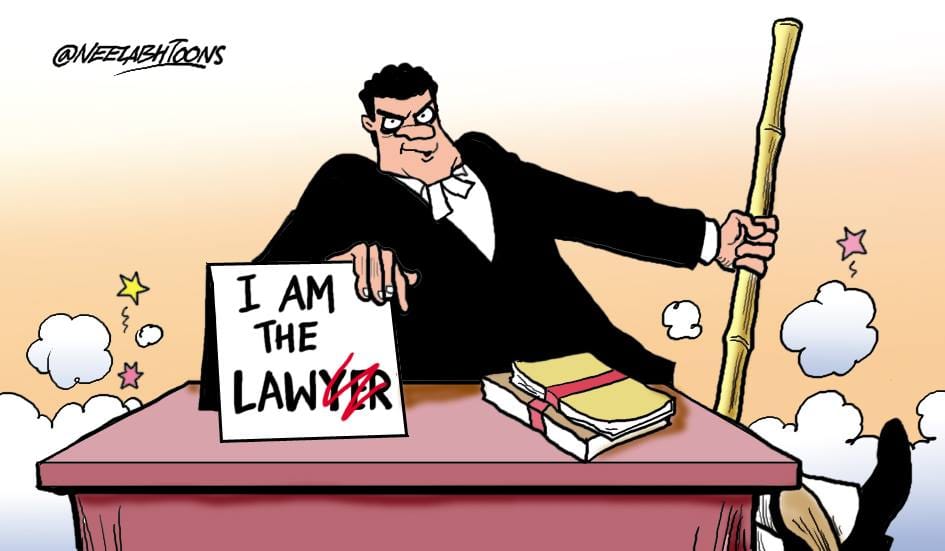Neelabh Banerjee also weighs in on the scuffle and alludes to an incident in which a policeman was assaulted by some lawyers outside Saket court Monday. The cartoonist suggests that lawyers seem to think that they are above the law.