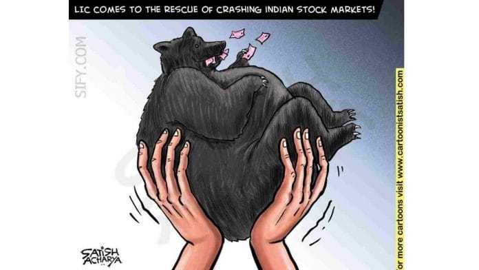 In today’s featured cartoon, Satish Acharya illustrates how LIC could come to the rescue of stock markets that continue to make bearish losses day after day.