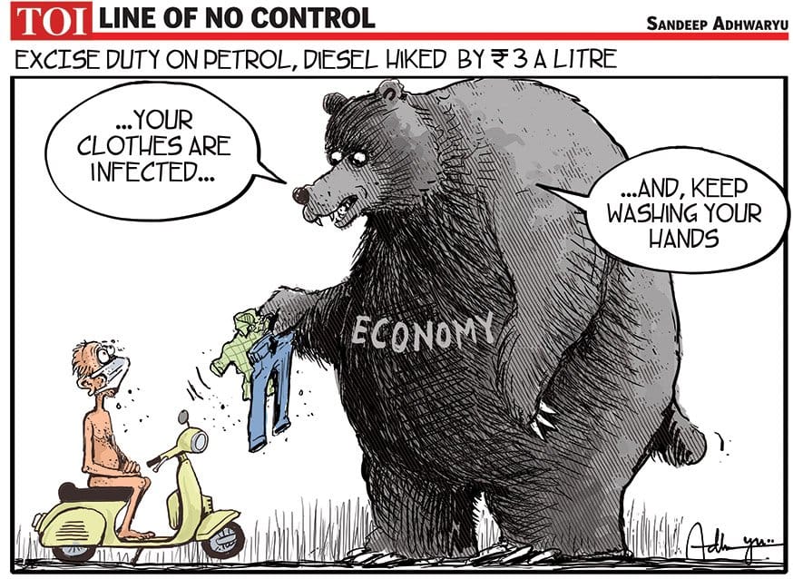 Sandeep Adhwaryu comments on the recent tariff hike on petrol and diesel and notes that even though one is losing money because of the economy — do not forget to wash your hands.