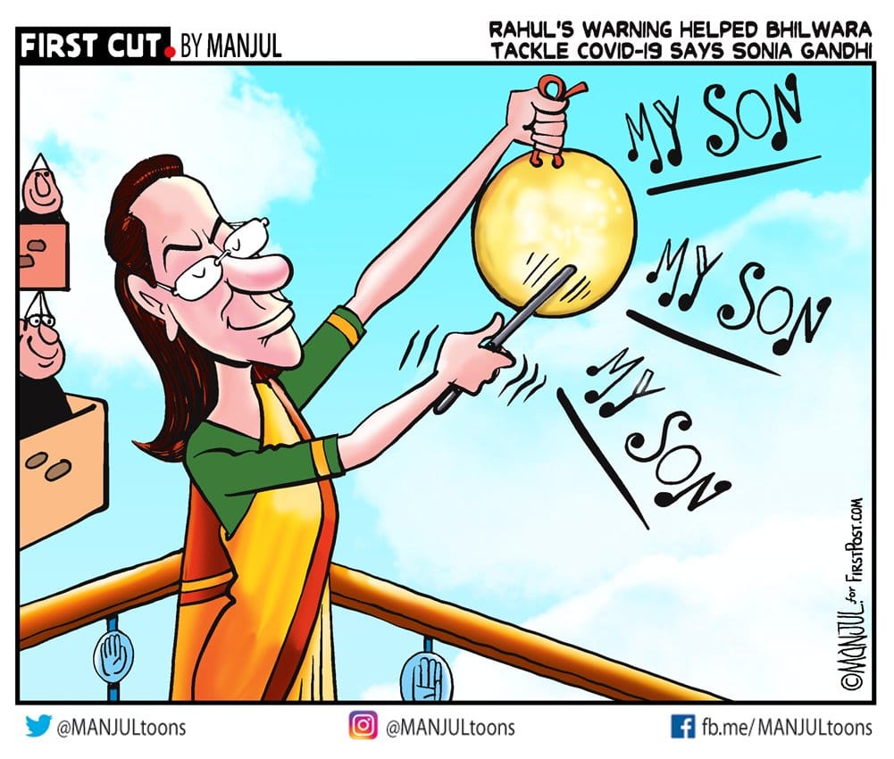 Manjul poked fun at Sonia Gandhi for endlessly praising her son Rahul Gandhi for his alleged role in the success of Bhilwara model.