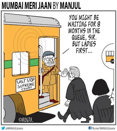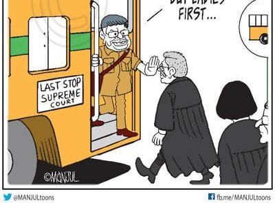 Cartoonist Manjul says “ladies first” after Justice Indira Banerjee took the oath first out of the three who got elevated to the Supreme Court Monday. Justice K.M Joseph was the third to take the oath despite being eight months in the line.