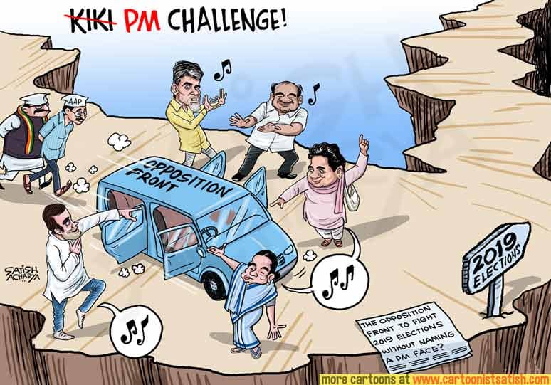 In Mail Today, Satish Acharya compares opposition parties’ Friday announcement that they will stand for next year’s general elections without a prime ministerial candidate with the Kiki Challenge.