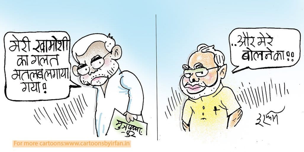 Cartoonist Irfan takes a dig at Bihar chief minister Nitish Kumar’s position and Prime Minister Narendra Modi’s silence on the Muzaffarpur shelter home rape case. Kumar Monday said the case was “condemnable”.