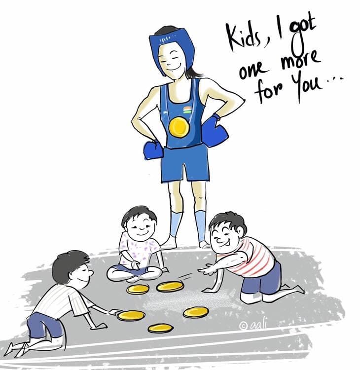 Aali celebrates boxing legend Mary Kom’s sixth gold win in the World Championship Saturday.