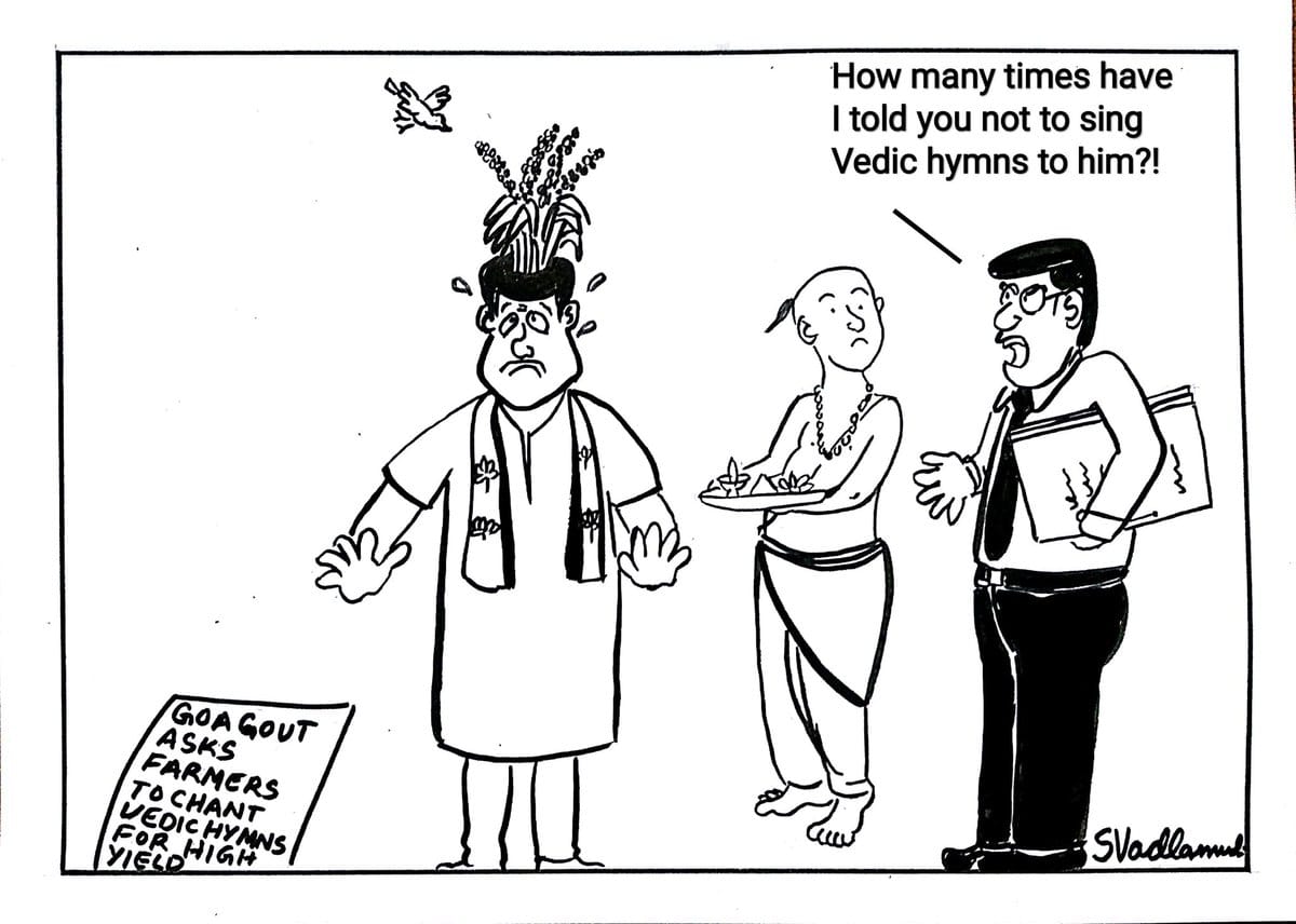 Swathi Vadlamudi has a funny take on BJP-led Goa government’s suggestion that farmers should chant Vedic mantra for a good harvest.