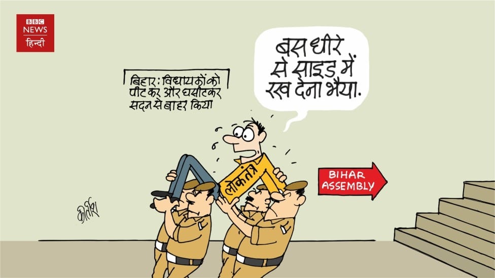 E.P. Unny draws a comparison between Uttar Pradesh Police and Bihar Police, after the latter were called in to throw out dissenting MLAs during the passing of the police bill.