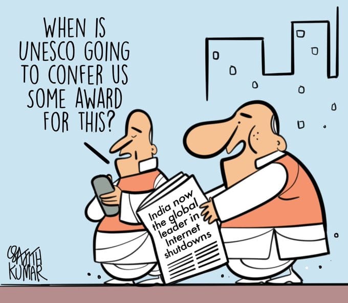 Sajith Kumar adds a dash of satire as he comments on India becoming the global capital of internet shutdowns.