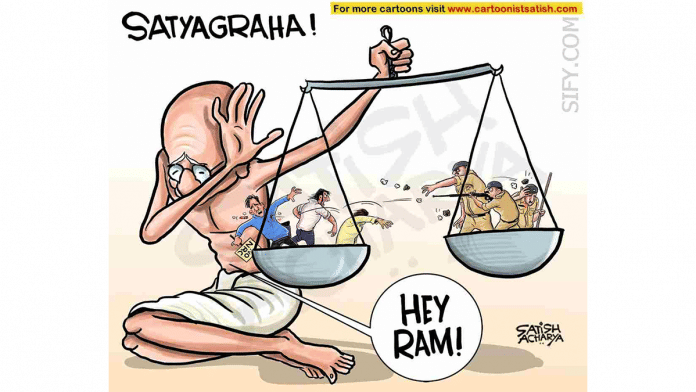 In light of the violent clashes between the police and the protesters agitating against the recent Citizenship (Amendment) Act, in today’s featured cartoon, Satish Acharya comments on how the country has failed Mahatma Gandhi.