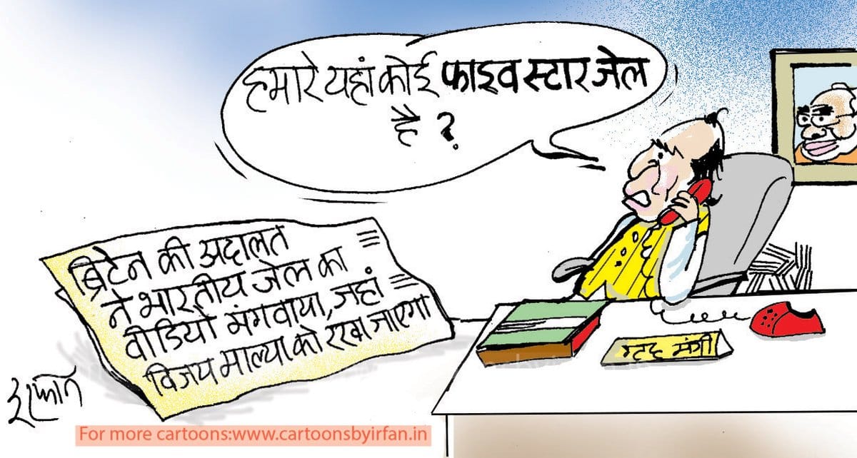 Cartoonist Irfan takes a dig at the extradition proceedings against Vijay Mallya in a British court. After Mallya complained that there was “no natural light” and fresh air in Indian jails, the magistrate’s court at Westminster has asked the Indian government to provide a video of Barrack 12 at Arthur Road Jail in Mumbai in three weeks’ time.