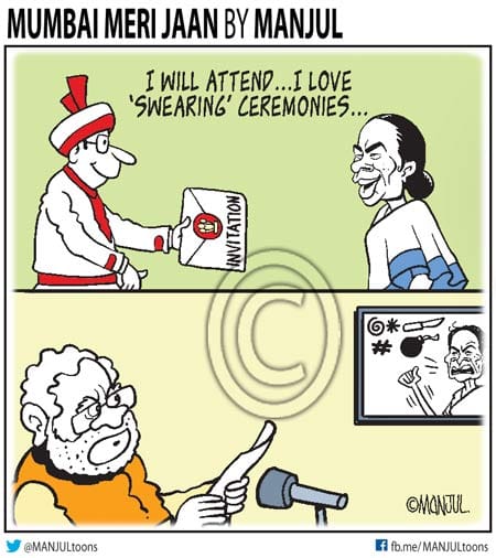 As West Bengal chief minister Mamata Banerjee refuses to attend PM-elect Narendra Modi’s oath-taking ceremony, Manjul depicts the TMC chief’s love for ‘swearing’ events.