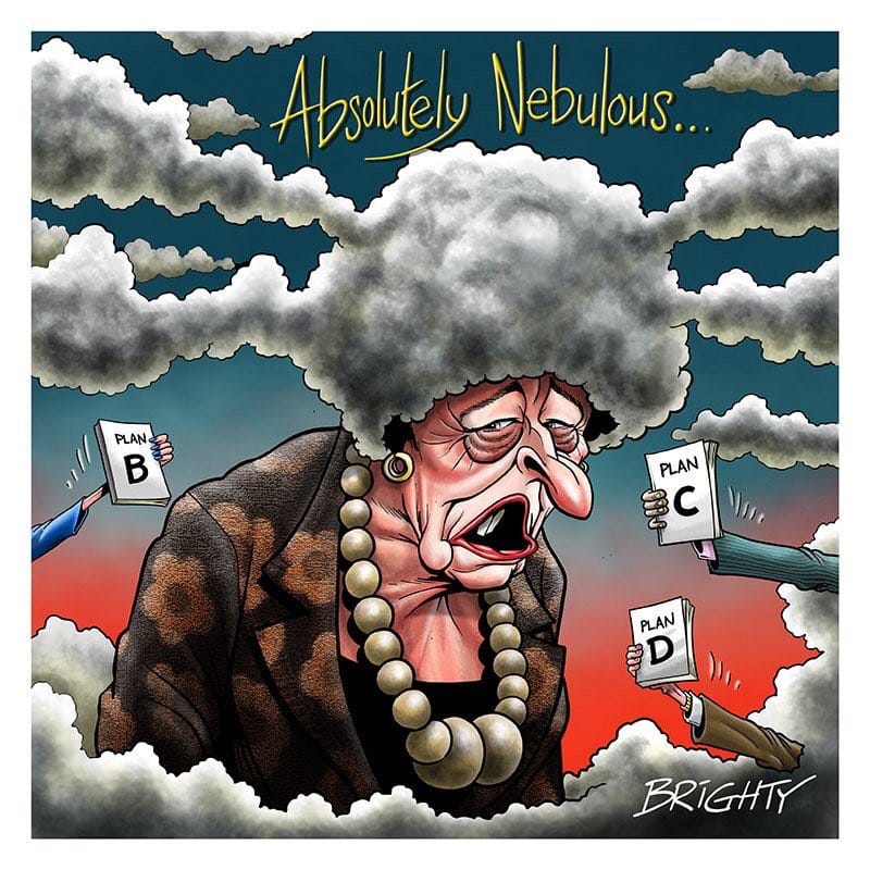 Brighty depicts Theresa May as being shattered by Juncker’s nebulous remarks.