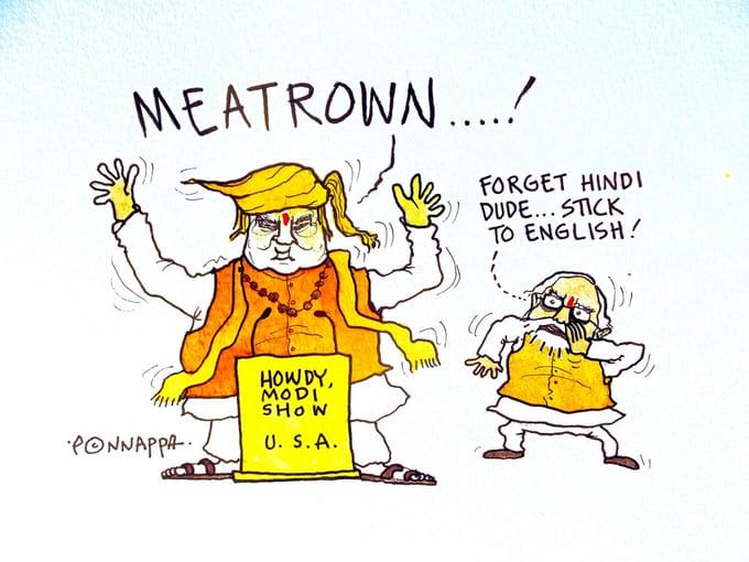 In today’s featured cartoon Nala Ponnappa takes a jibe at what President Donald Trump’s much-awaited appearance in Prime Minister Narendra Modi’s “Howdy Modi!” rally might entail.