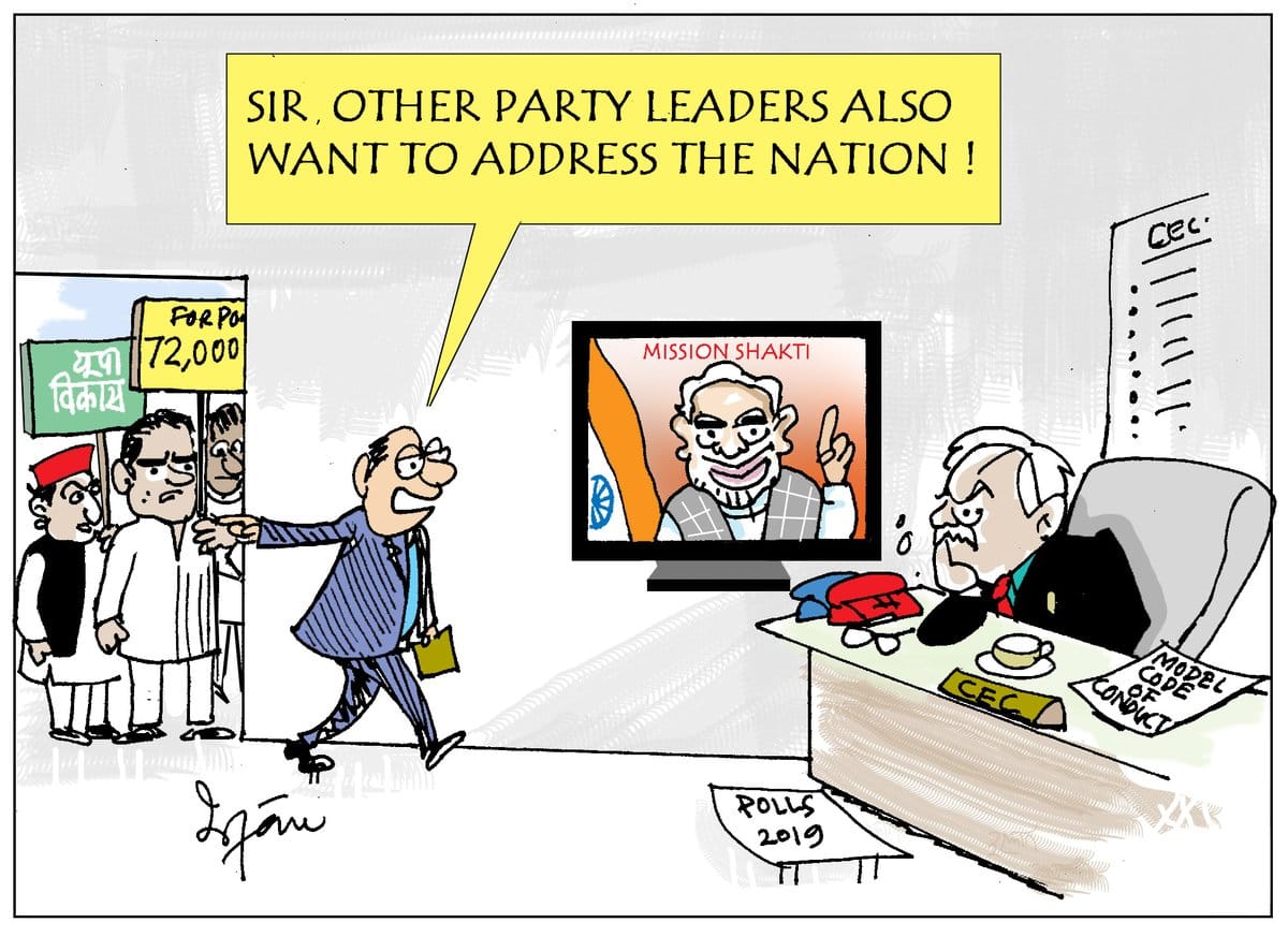 Irfan for Outlook magazine also takes a jibe at the Election Commission in the wake of the Prime Minister’s address on ‘Mission Shakti’.