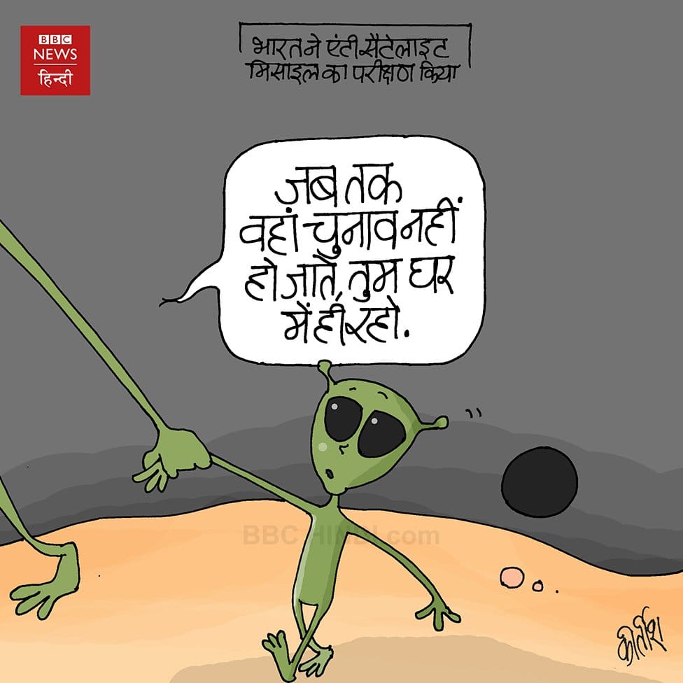 Kirtish Bhatt takes a jibe at Modi government milking the A-SAT missile test, suggesting that the election season is a tough period for extraterrestrial beings.
