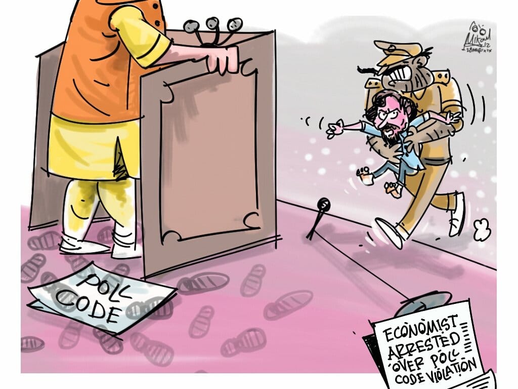Mika Aziz on the irony of renowned economist Jean Dreze being arrested over alleged violation of the model code even as the Prime Minister made his announcement.