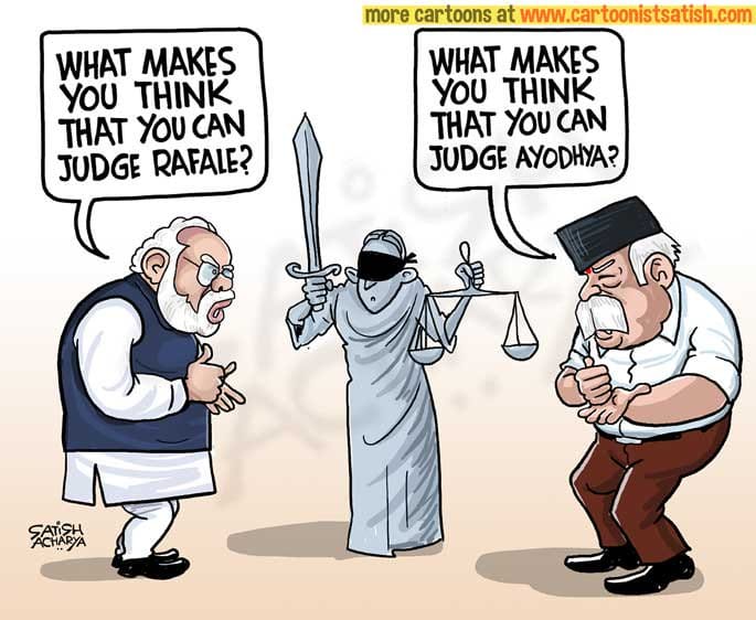 Satish Acharya refers to recent comments by BJP and RSS leaders questioning the judiciary’s ability to judge the Rafale and Ayodhya cases.