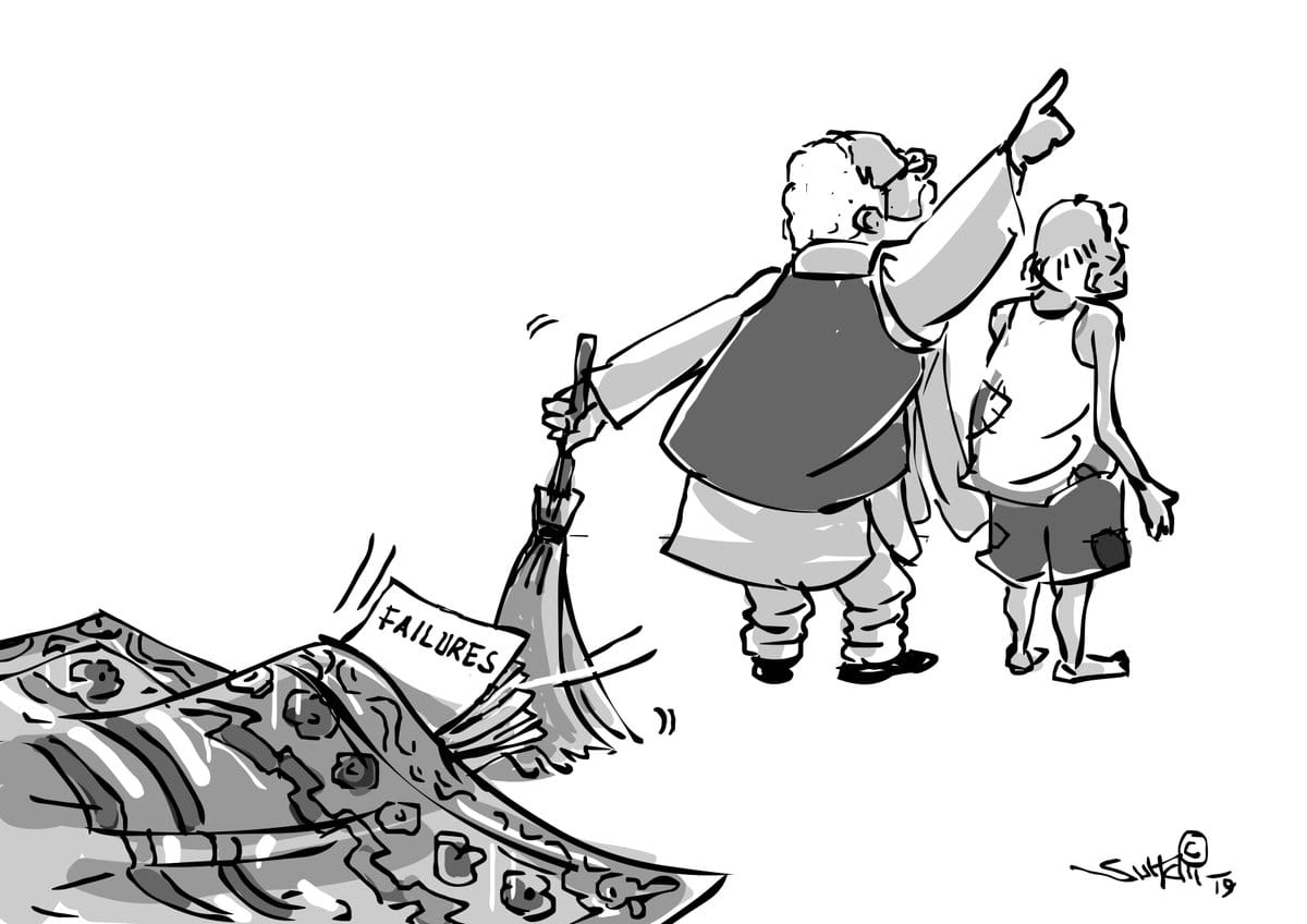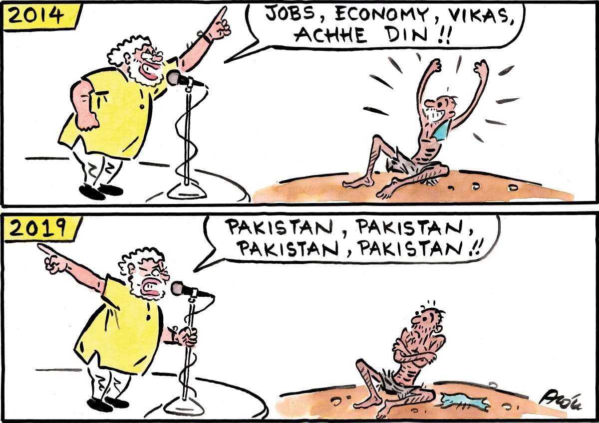 Suhail Naqshbandi illustrates Prime Minister Narendra Modi distracting voters with the success of India’s anti-satellite missile test while sweeping the government’s failures under the carpet.