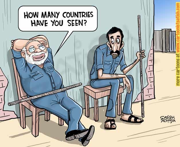 Satirising Prime Minister Narendra Modi’s ‘Main Bhi Chowkidar’ campaign, Satish Acharya makes a comment on the differences between the positions of the PM and a watchman.