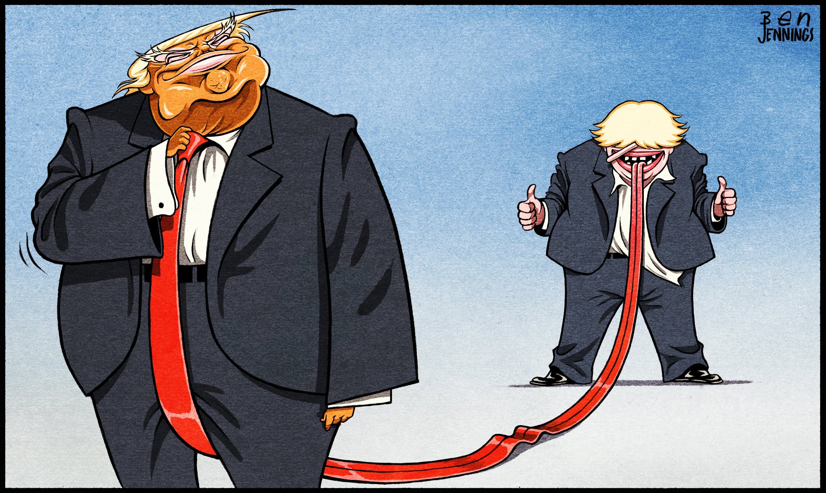 Ben Jennings likens US President Trump to UK PM Boris Johnson, both of whom are in the midst of political scandals, with one facing an impeachment inquiry and the other found to have acted unlawfully in suspending the British parliament.