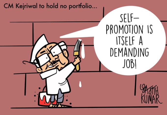 Sajith Kumar takes a swipe at recently re-elected Delhi CM Arvind Kejriwal for not holding any portfolio in the government.