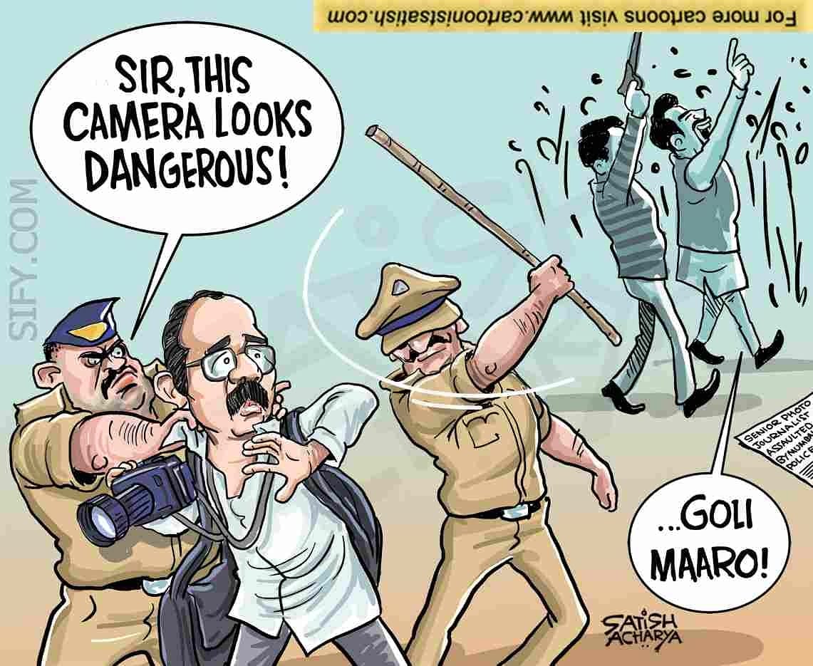 Satish Acharya takes a dig at an alleged assault by police personnel on a Mumbai-based photojournalist at an anti-CAA rally.
