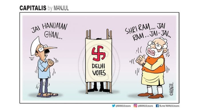 In today’s featured cartoon, Manjul takes a jibe at Delhi Chief Minister Arvind Kejriwal and Prime Minister Narendra Modi’s last-minute prayers as the national capital went to polls Saturday.