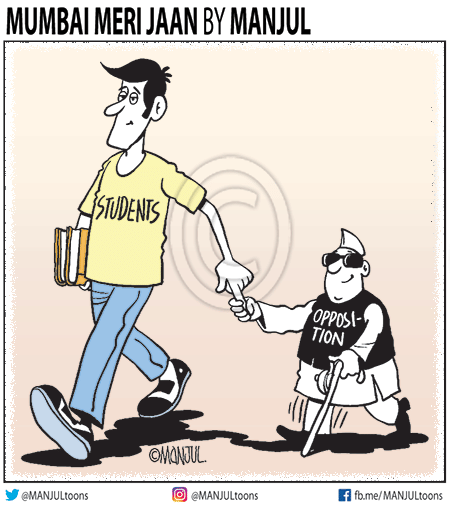 Manjul takes a jibe at the inefficiency of the Opposition, and implies that it is the country’s students who are functioning on their behalf.
