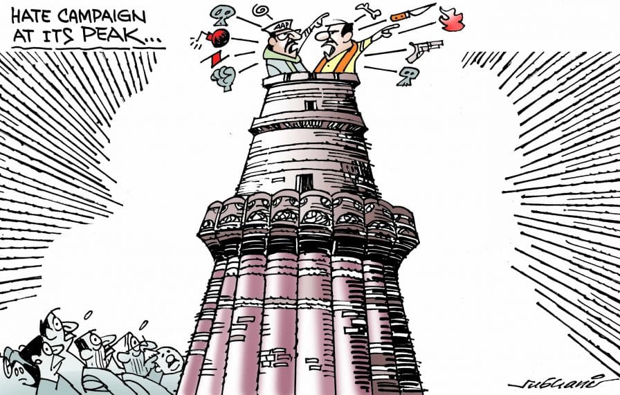 Subhani sarcastically depicts the polarising and hateful campaigns, parties indulged in while campaigning for the Delhi elections.