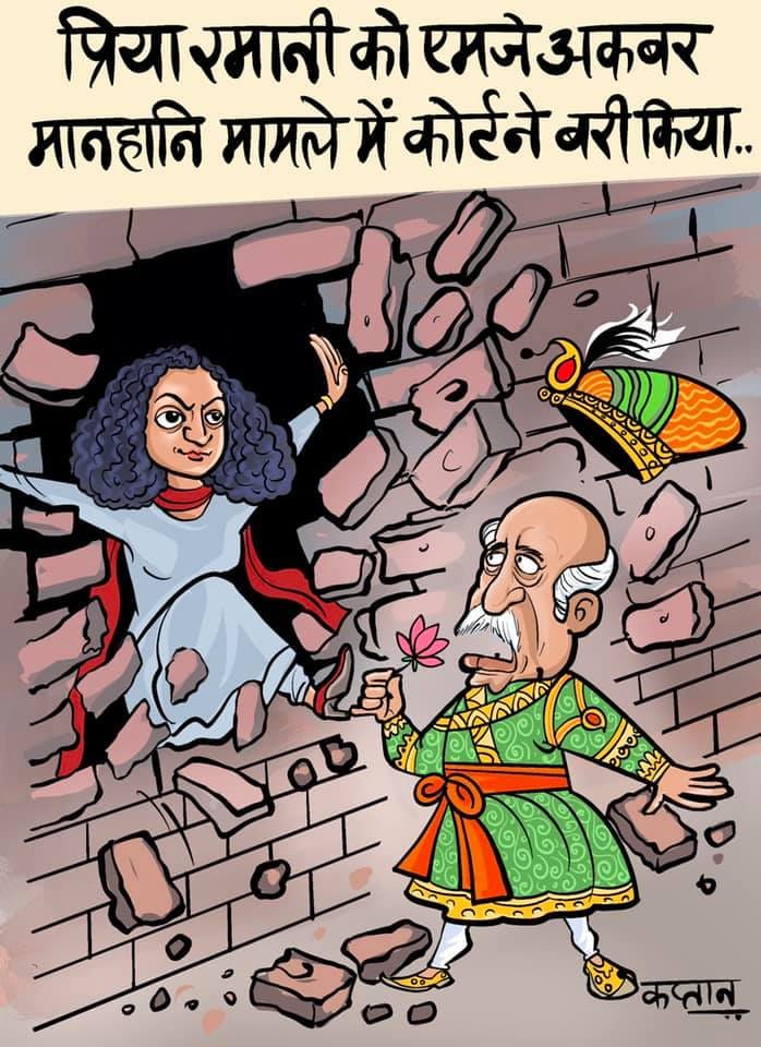 In today’s featured cartoon, Sandeep Adhwaryu illustrates on Priya Ramani’s acquittal in the defamation case filed by former Union minister M.J. Akbar over her allegations of sexual harassment against him.