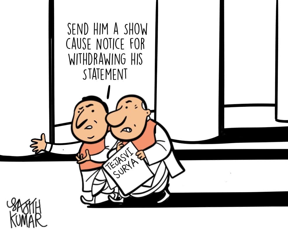 Sajith Kumar alludes to how the BJP’s Tejasvi Surya withdrew his remarks that called for Muslims and Christians to be ‘reconverted’ to Hinduism.