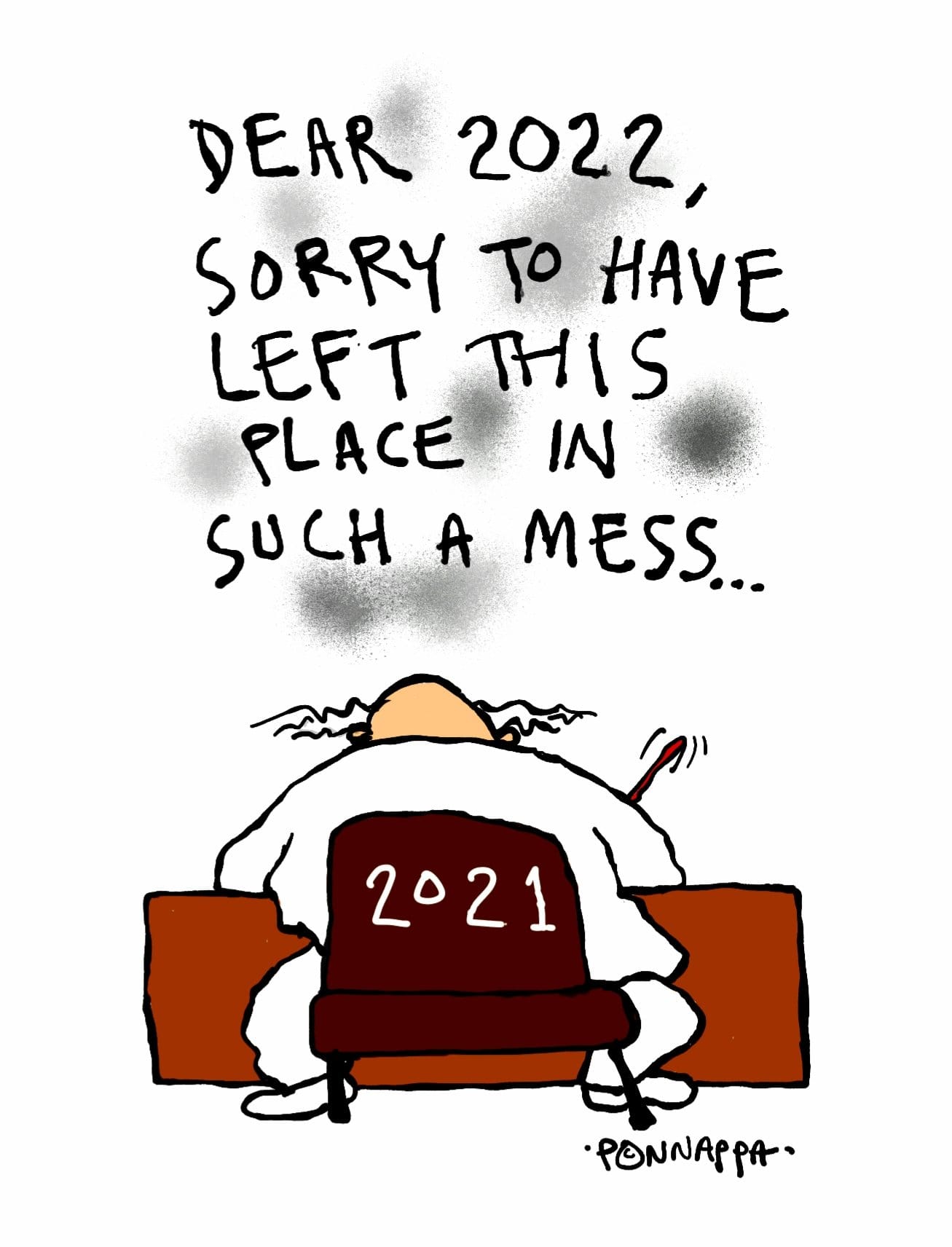 Nala Ponnappa shows an aged 2021 writing an apology note to its incoming successor.