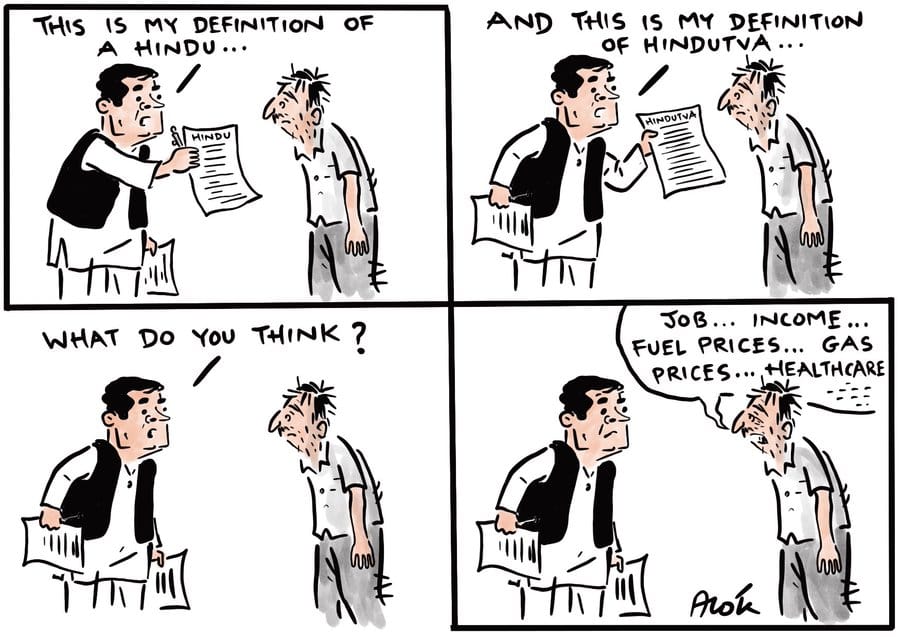 Alok Nirantar mocks Rahul Gandhi for getting into a Hindu-or-Hindutva debate with the BJP instead of addressing issues faced by the common Indian, like jobs, price rise and lack of healthcare facilities.