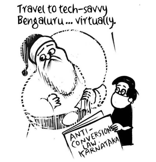 E.P Unny uses the Christmas/Santa Claus motif to take a shot at the Basavaraj Bommai cabinet clearing the controversial anti-conversion bill, which Christians have been opposing.