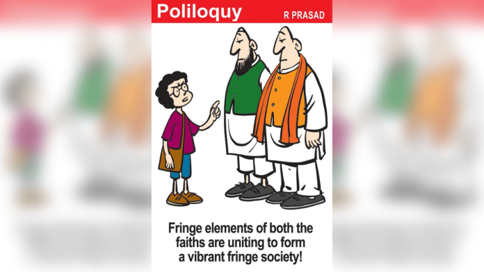 In today’s featured cartoon, R Prasad refers to the brutal murder of a tailor, Kanhaiya Lal Teli, in Udaipur Tuesday, allegedly over a social media post he supposedly shared in support of former Bharatiya Janata Party (BJP) spokesperson Nupur Sharma. Sharma, whose controversial remarks on the Prophet Muhammad sparked outrage across the Middle East, was suspended by her party earlier this month and labelled as a “fringe element” by the Ministry of External Affairs. The suspects arrested in Kanhaiya Lal’s murder, meanwhile, are thought to have Islamic fundamentalist leanings.