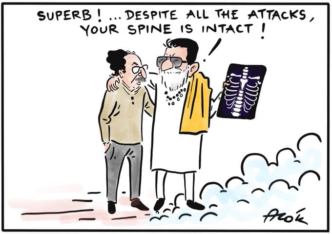 E.P. Unny takes a dig at the political turmoil underway in Maharashtra. After a rebellion by Shiv Sena MLAs against their own party led to the resignation of Sena chief and CM Uddhav Thackeray, and the fall of the Maha Vikas Aghadi coalition government, the BJP’s Devendra Fadnavis looked set to return as CM. However, Fadnavis in a surprise move Thursday announced that instead, Sena rebel leader Eknath Shinde would become CM, with the BJP supporting his government from outside.