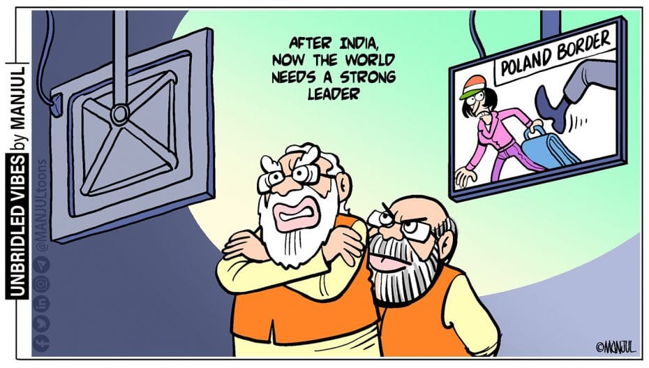 Amid reports of stranded Indian students being attacked by Ukrainian border guards while attempting to cross into Poland, Manjul takes a dig at how Prime Minister Narendra Modi is being projected as a powerful world leader who could help to end the war.