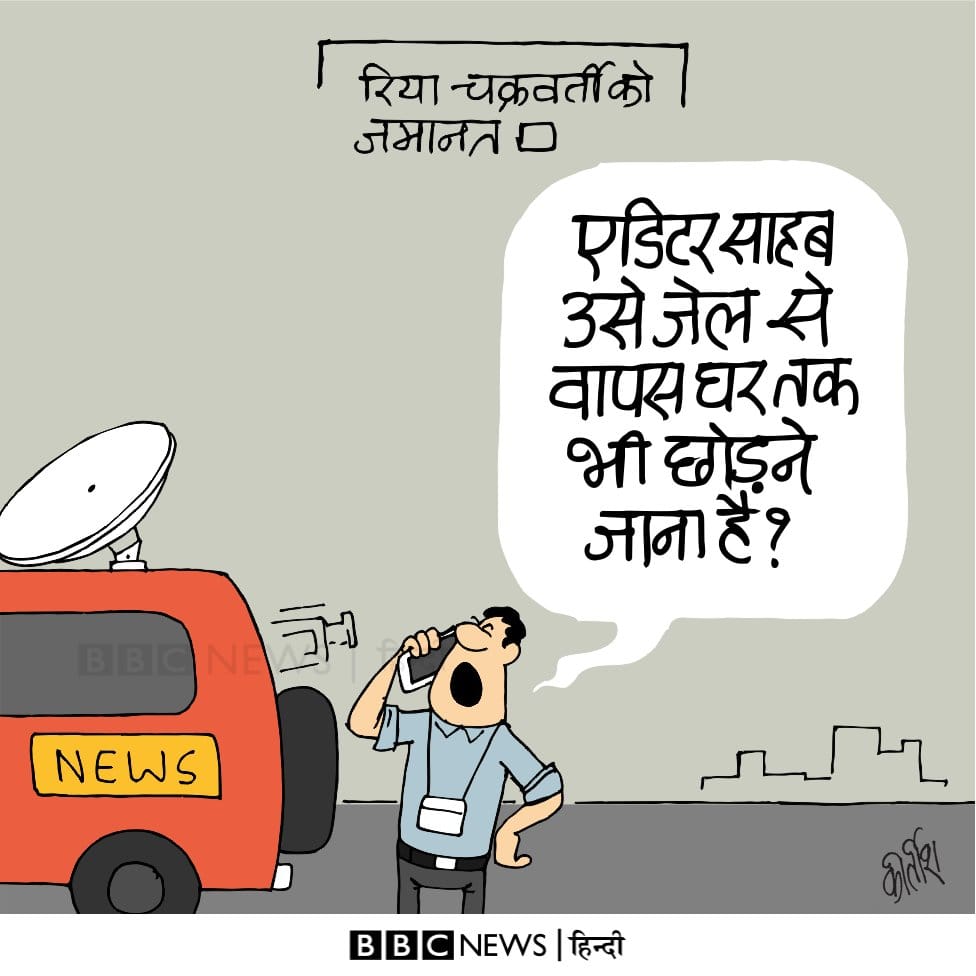 In today’s featured cartoon, Sandeep Adhwaryu speculates that now that the Central Bureau Investigation, Narcotics Control Bureau and the Enforcement Directorate have failed to level any charges against actor Rhea Chakraborty, the National Investigation Agency may be asked to step in.