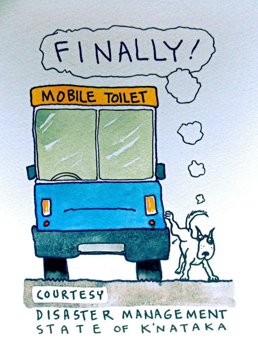 The Bruhat Bengaluru Mahanagara Palike Sunday sent mobile toilets to flood-hit areas of Kodagu in Karnataka. The toilets will be installed in the relief camps. Nala Ponnappa highlights the need of the mobile toilets in his cartoon.