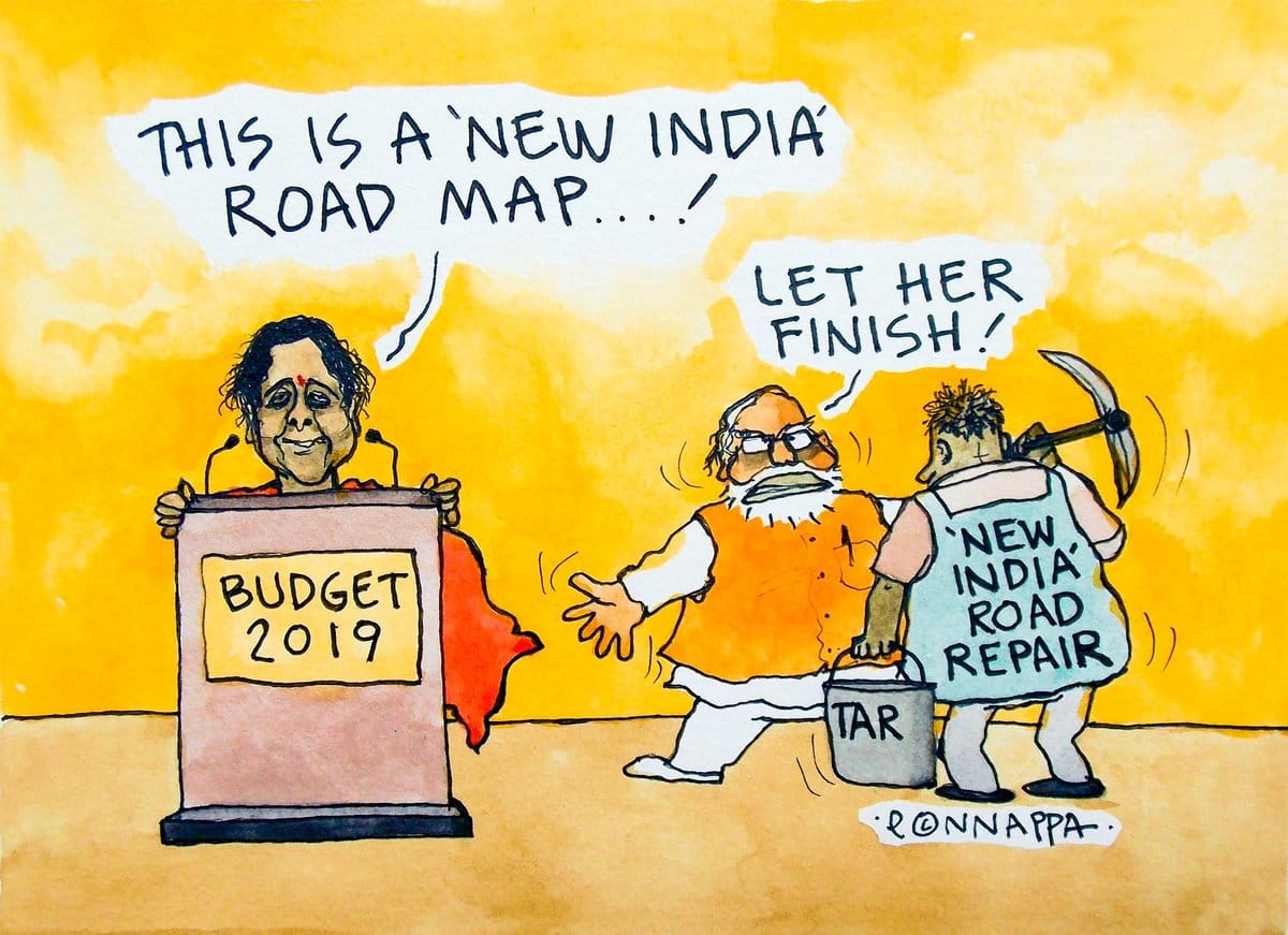In today’s featured cartoon, Alok Nirantar takes a dig at Finance Minister Nirmala Sitharaman for the Union Budget she presented Friday.