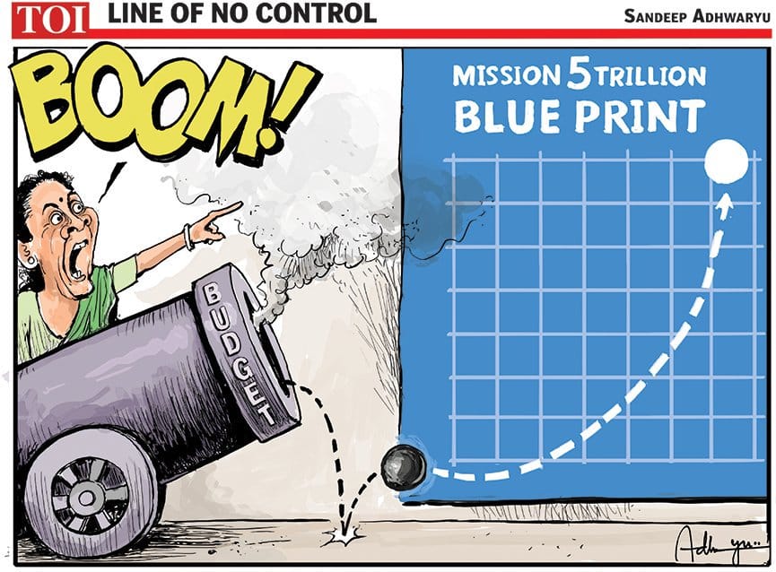 Sandeep Adhwaryu, for The Times of India, weighs in on the Modi government’s aim to make India a $5-trillion economy by 2024 through measures announced in the Union Budget.