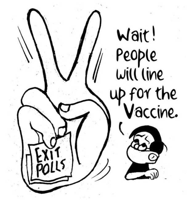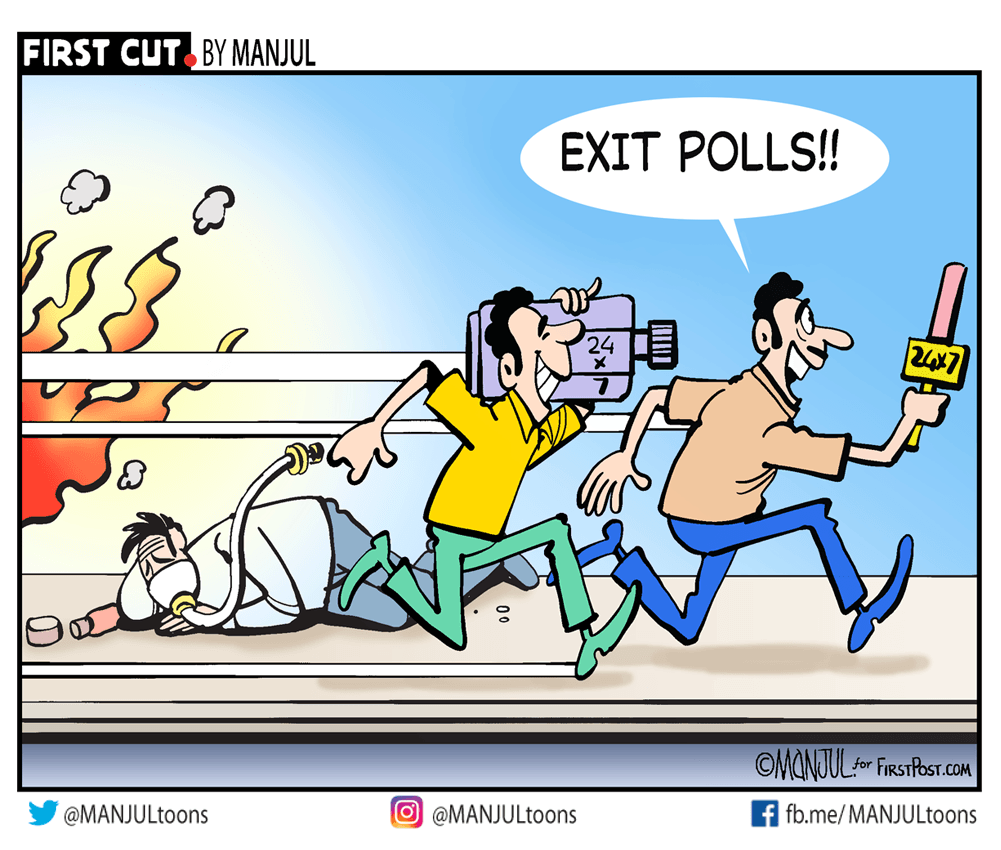Manjul takes a dig at television media for its continued focus on assembly election exit polls amid the worsening Covid pandemic situation in the country.