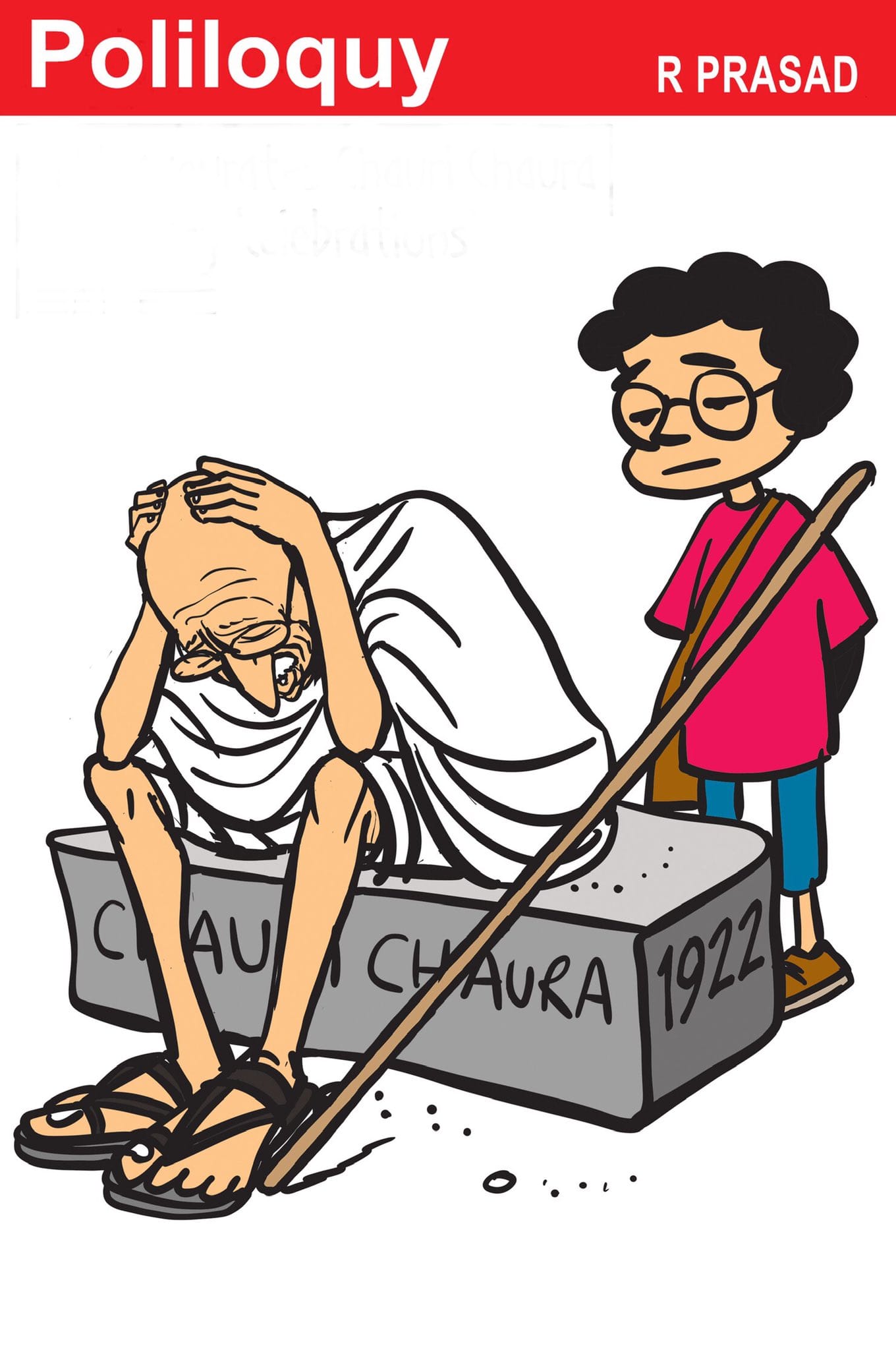 R. Prasad illustrates on the centenary anniversary of the Chauri Chaura incident in the United Provinces’ (now Uttar Pradesh) that took place on 4 February 1922 — when a confrontation between police and protesters turned violent in Gorakhpur district — leading to Mahatma Gandhi calling off the Non-Cooperation Movement.