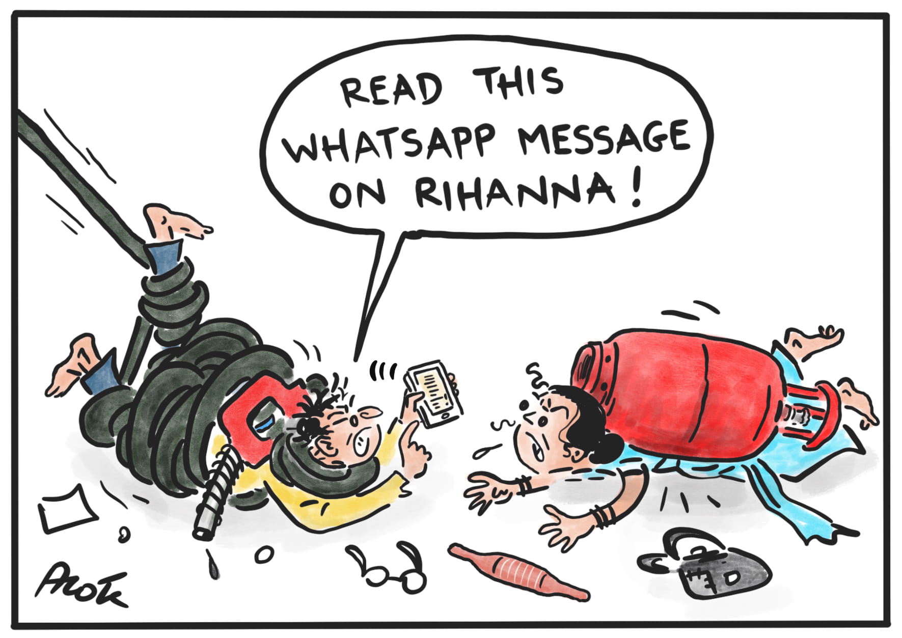Cartoonist Alok Nirantar alludes to the rise in petrol and diesel prices by further 30 paise each.