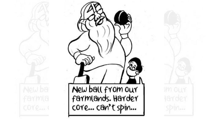 In today’s featured cartoon: With a reference to the new cricket ball that will be used in the ongoing India-England test series, E.P. Unny takes a dig at current and former Indian cricketers who came out in support of the government and used the hashtag #IndiaAgainstPropaganda on Twitter.