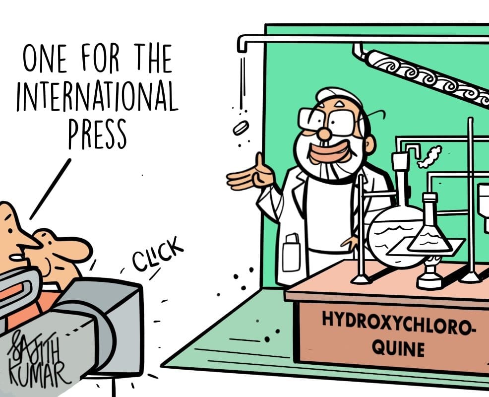 Sajith Kumar illustrates the media attention PM Modi has received for partially lifting the export ban on hydroxychloroquine.