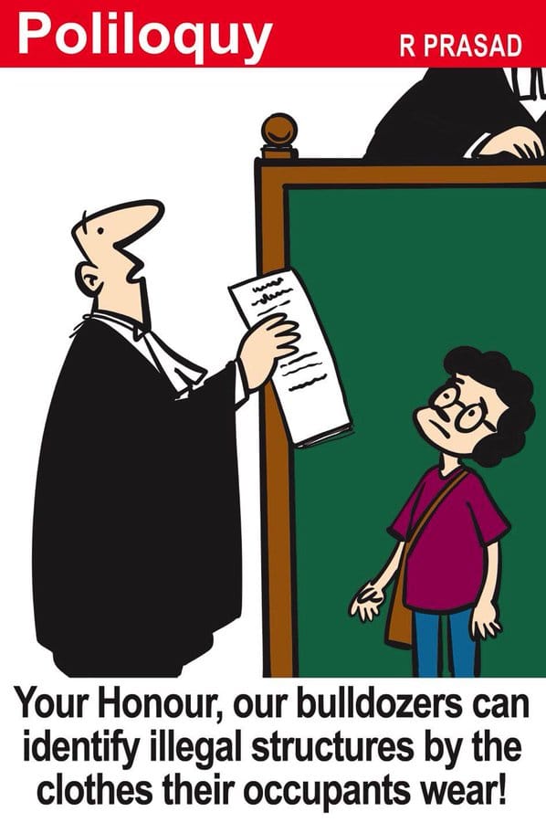 R. Prasad comments on the proceedings in the Supreme Court over the Uttar Pradesh government demolishing the homes of those accused of orchestrating violent demonstrations to demand the arrest of former BJP leader Nupur Sharma. Government lawyers argued that the homes were demolished because they were unauthorised constructions. In 2019, during the protests against the Citizenship (Amendment) Act, Prime Minister Narendra Modi had said, “People who are setting fire (to property) can be seen on TV. They can be identified by the clothes they are wearing.”